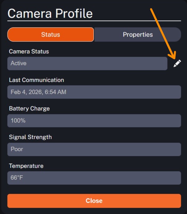 Then click the pencil icon next to Camera Status.